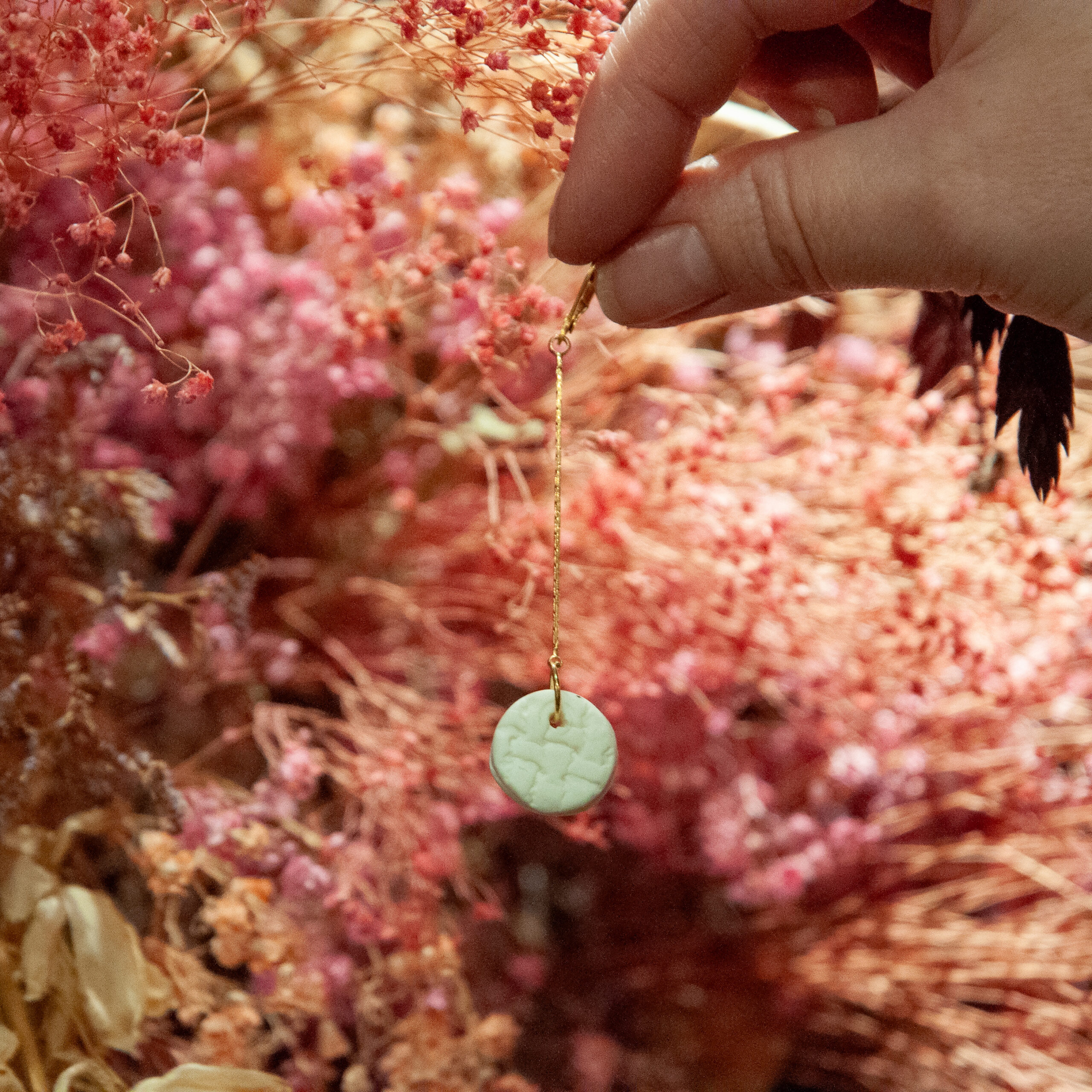 Pleines de délicatesse, elles se balancent au gré de vos mouvements. Le blanc porcelaine est une couleur qui convient à tout le monde et toutes les couleurs de cheveux et de peaux. Ce sont des boucles d’oreilles poétiques, lumineuses et délicates.