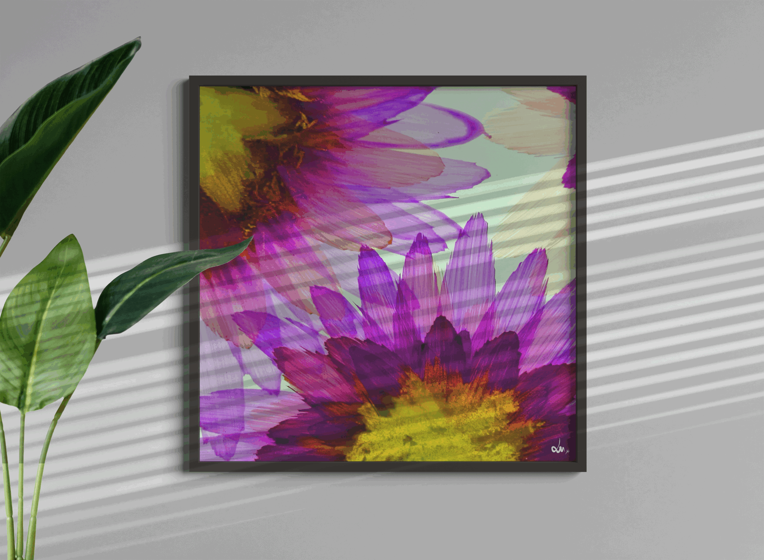 Cette illustration est une de mes créations originales. Comme souvent, je m’inspire de la nature et la mets à l’honneur dans mon atelier. Ici, j’ai voulu allier la beauté des fleurs et la légèreté des plumes. Cette œuvre est colorée et abstraite. Pleine de poésie, elle décore à ravir vos intérieurs en y ajoutant une touche de couleur.